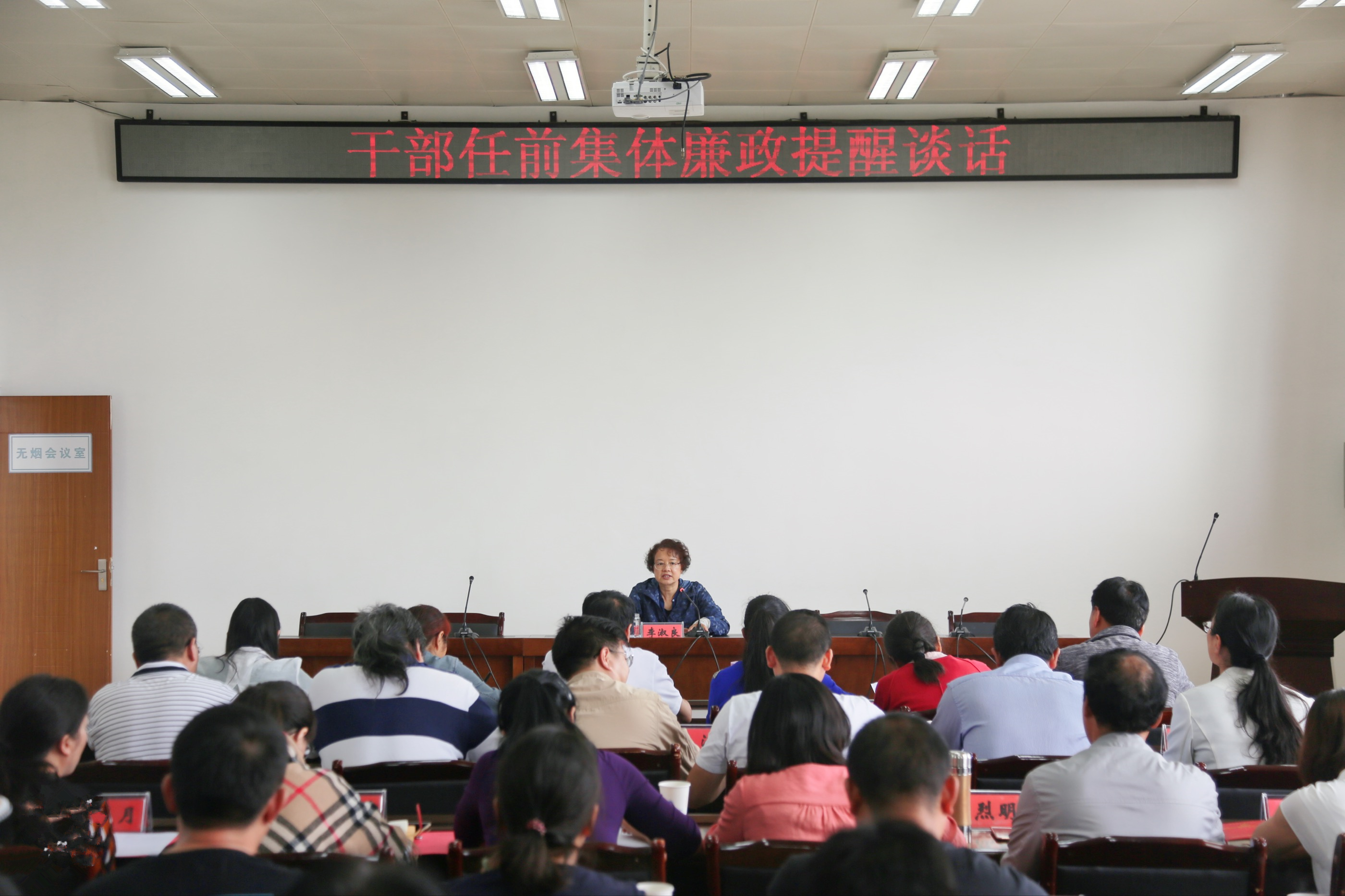 李淑良同志首先对各位履任新职的干部表示祝贺!她指出,干部任前廉政谈话是干部选拔任用工作的一项重要制度和程序,是加强干部队伍建设、增强领导干部廉洁自律意识、推进学校改革发展的重要举措,是学习勉励过程,也是警示教育的过程,是为了提高大家对党风廉政建设重要性的认识。希望每一个新调整任职的干部,进一步强化学习意识、责任意识、廉政意识和健康意识,以良好的精神状态和饱满的工作热情迎接新挑战,为学校专升本和转型发展作出更大的贡献,助推学校发展再上新台阶。同时向大家提出三个方面的要求:一是加强学习,严守党的政治纪律和政治规矩,坚决做到“两个维护”;二是认真履职职责,廉洁从政,坚决杜绝形式主义官僚主义;三是管好八小时以外的自己,做到慎初、慎独、慎微、慎交。