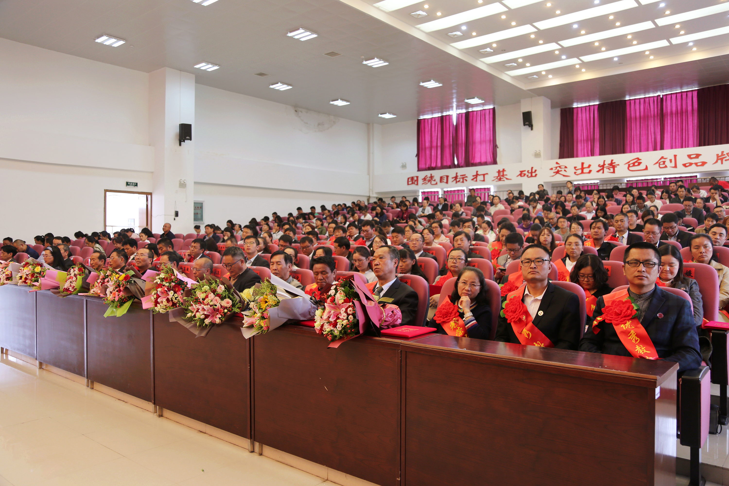 校党委书记张祖武在会上代表学校党委和行政,向默默耕耘、辛勤工作在教育教学第一线的广大教师和教育工作者致以节日的问候!向为学校生存和发展呕心沥血、恪尽职守的每一位教职员工表示衷心的感谢!向今天受到表彰的各位老师表示热烈的祝贺!他说,丽江师专有着百余年的办学历史,今天所取得的成绩,是一代又一代丽江师专人在平凡的教学、管理、服务岗位上忠于职守、辛勤工作、为人师表、无私奉献的结果。站在前辈的肩上,现在我们仍有四百多位教职员工不忘初心、牢记使命,继续为我们的教育事业奋斗着。教育是国之大计、党之大计。办好教育、办好学校,教师是关键。我们要守初心,担使命,厚植家国情怀;要立师德,献爱心,倾注无限关怀;要拓视野、容天下,敞开博大胸怀。学校的发展壮大是每一位教职员工共同的梦想和奋斗的目标,要有信心有决心让学校越来越好,只要我们弘扬正气,同心协力,担当作为,丽江师专的明天会更好。他激励全体老师保持“心齐、气顺、劲足、实干”的精神状态,秉承“德高业实,丽泽三江”的校训,博学弘德、励志笃行,锐意开拓进取,奋发有为,为早日把学校建成一所地方应用型师范本科院校而不懈努力!