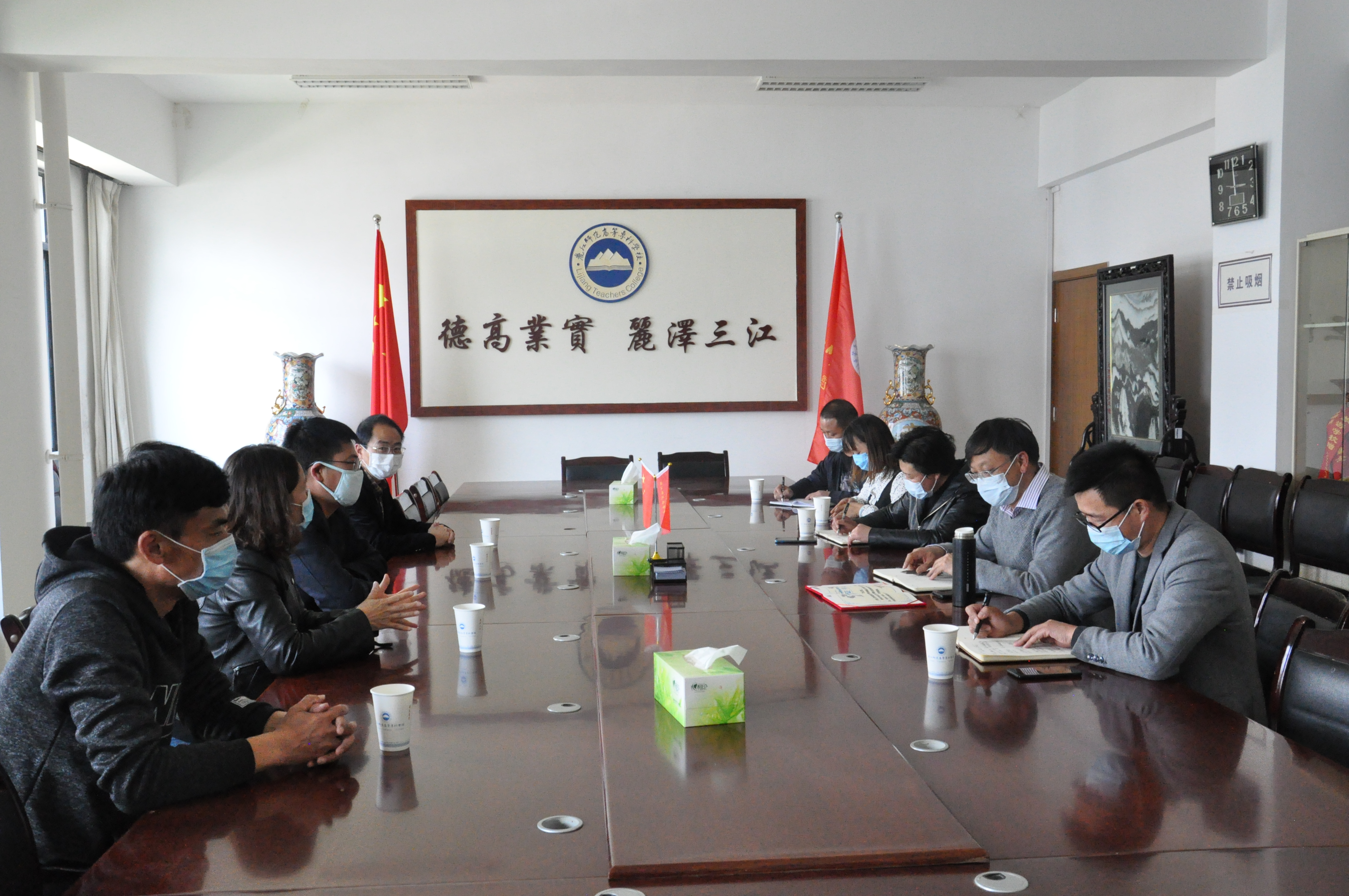 苏金奇一行代表中国人寿保险股份有限公司丽江分公司看望了坚守在抗疫一线的教师,并介绍了公司相关情况。苏金奇表示,在疫情期间,中国人寿保险股份有限公司主动担当社会责任,免费为医护人员赠送保险,为教育系统捐赠防疫物资。