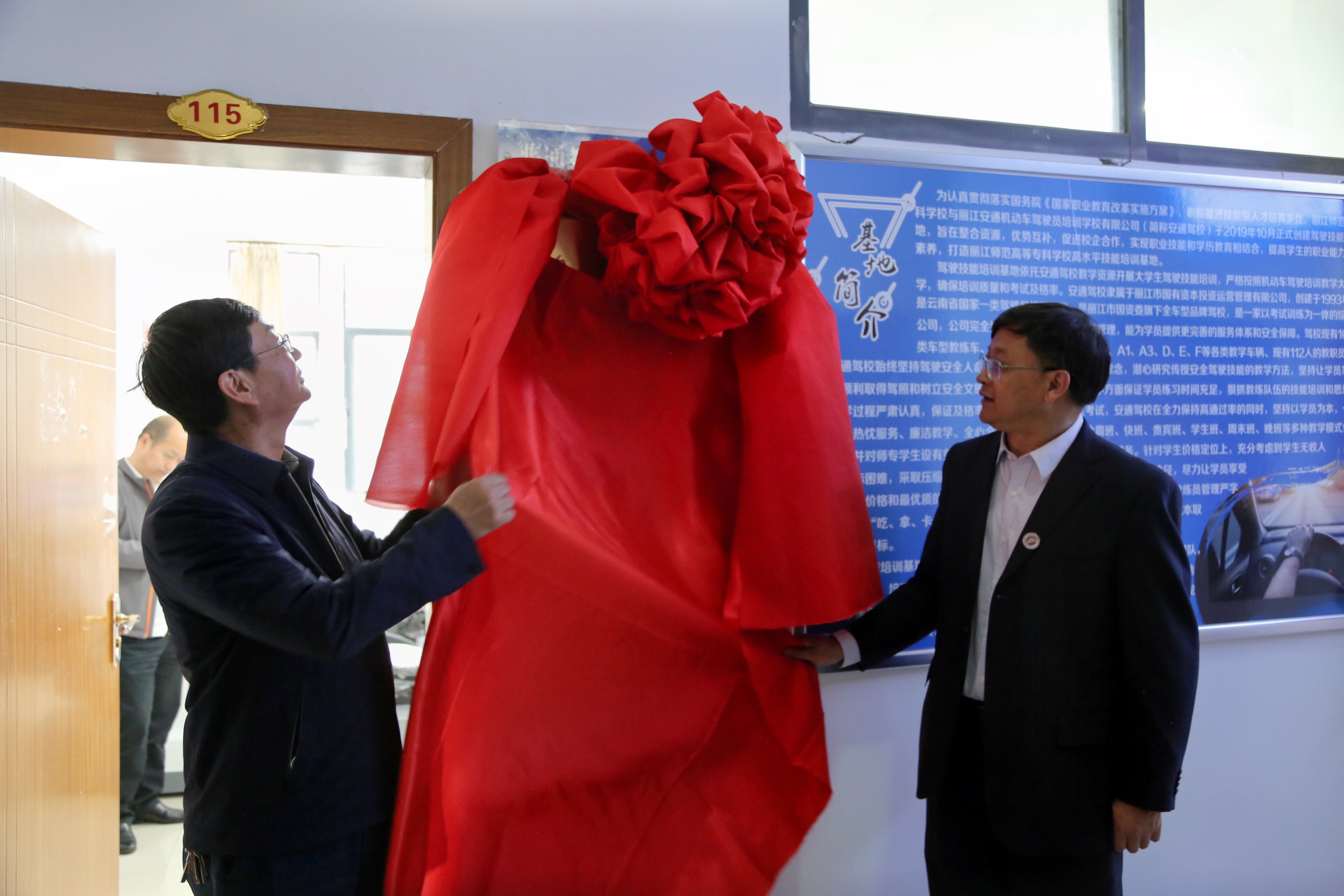 为贯彻落实国务院《国家职业教育改革实施方案》,积极推进技能型人才培养步伐,充分利用学校与地方企业各自的资源优势,促进校企合作,打造高水平技能实训基地,bat365官网与丽江安通机动车驾驶员学校共建驾驶技能培训基地。6月3日上午,驾驶技能培训基地揭牌仪式在教学楼115室举行。