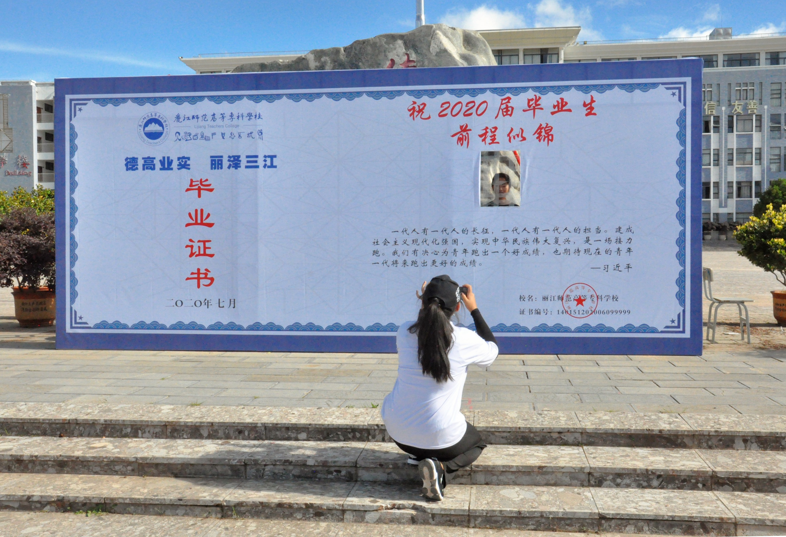此次返校的是1700多名毕业生,为营造温馨返校氛围,学校在南广场摆放了大型毕业证书留念墙,尽管刚刚风尘仆仆地归来,但还是有不少同学放下手中大件小件的行李,在毕业证书前拍照,留下与大学校园的温馨记忆。
