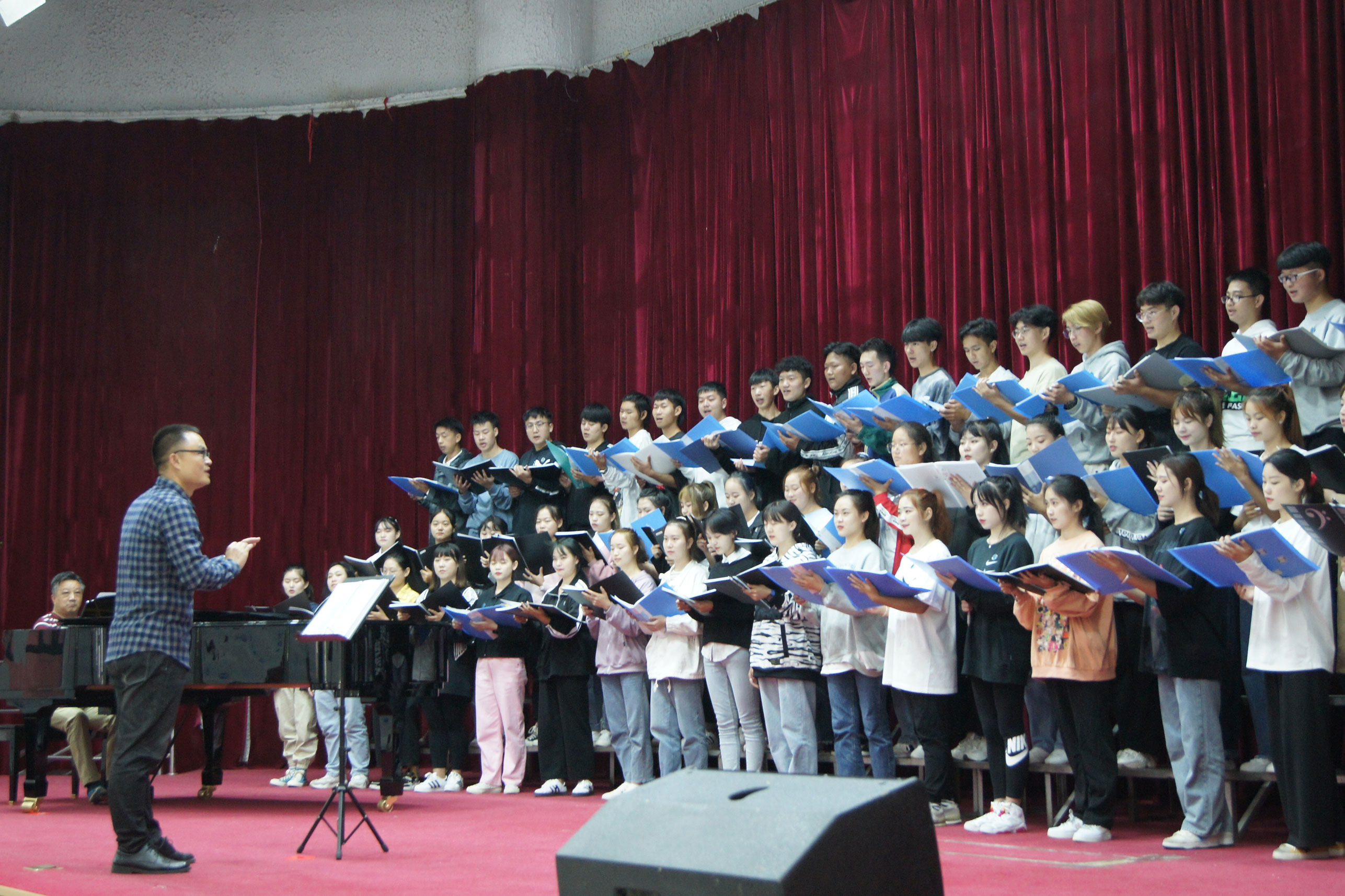 在艺术学院,陈部长参观了滇西北民族文化艺术传承基地。在音乐厅,陈宝生驻足观看、聆听由bat365官网教师禾雨创作的歌曲《北京有个金太阳》,并对学生们的合唱给予称赞,他说:“时至今日,《北京有个金太阳》仍然是一首振奋人心的歌,要把它传唱好。”