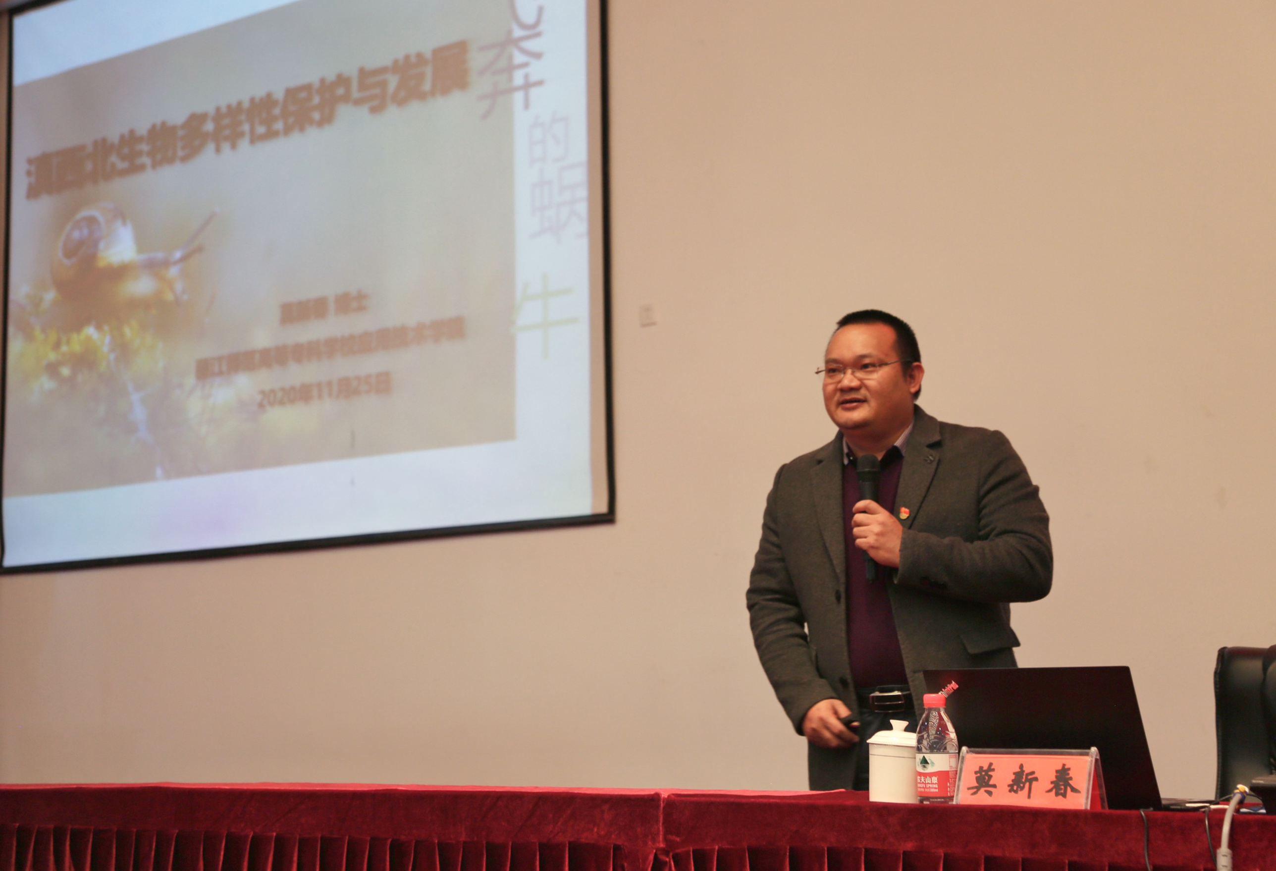 bat365官网应用技术学院莫新春博士围绕“滇西北生物多样性保护和发展”主题进行授课,详细的讲述了滇西北生物多样性概况、滇西北生物多样性保护现状、滇西北生物多样性保护与发展、生物多样性保护—我们在行动等四个内容,对学生宣讲了云南植物多样性分布状况及其特点。