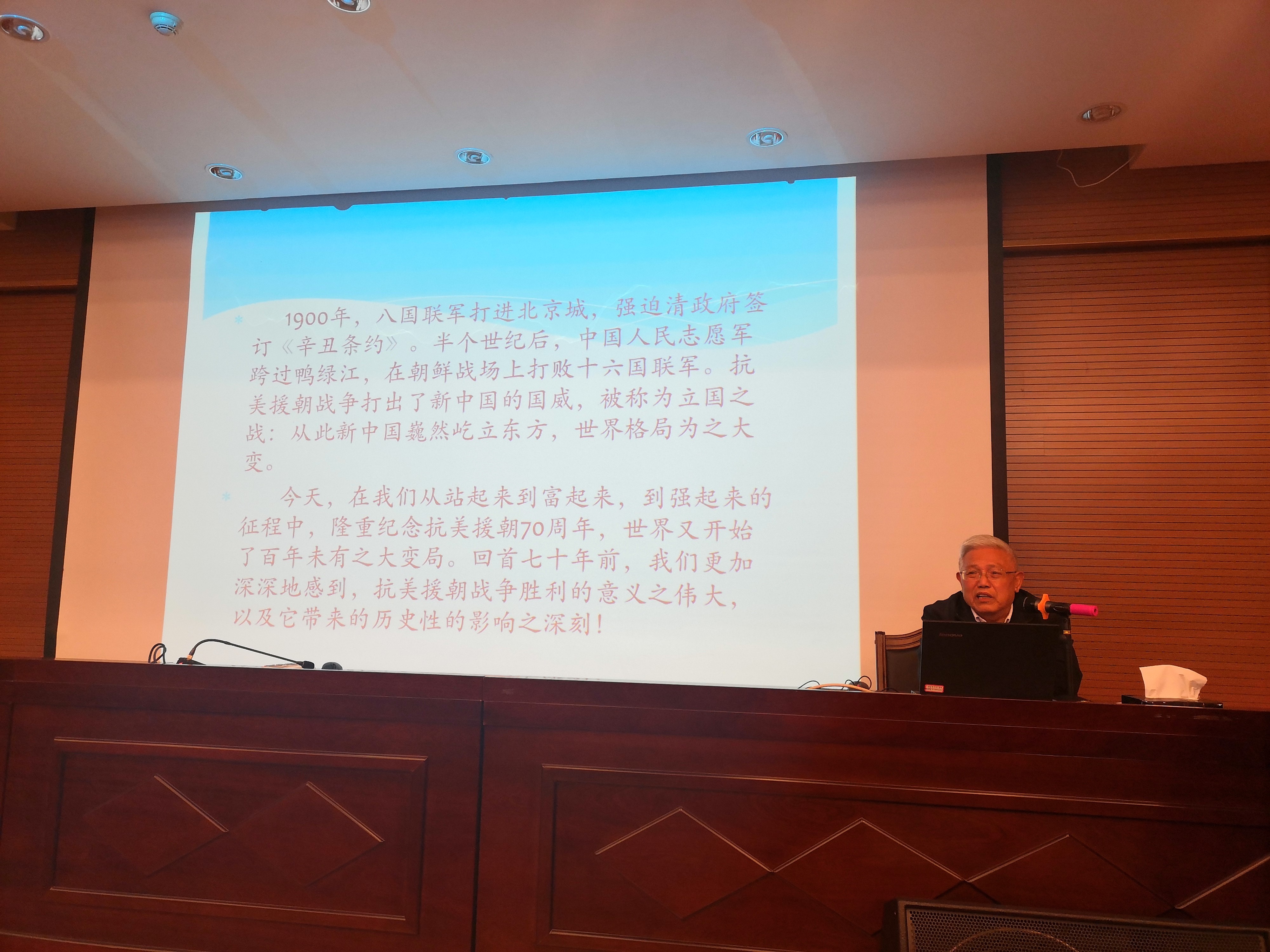 讲座中,吴宝璋教授以真实而生动的历史案例,向师生们深入浅出地介绍了抗美援朝这段光荣而伟大的历史,让bat365官网师生对抗美援朝的由来、艰难的抗战、伟大的胜利和历史意义作了全面而透彻的理解,激发了师生的爱国主义热情,凝心聚力,进一步铸牢中华民族共同体意识。