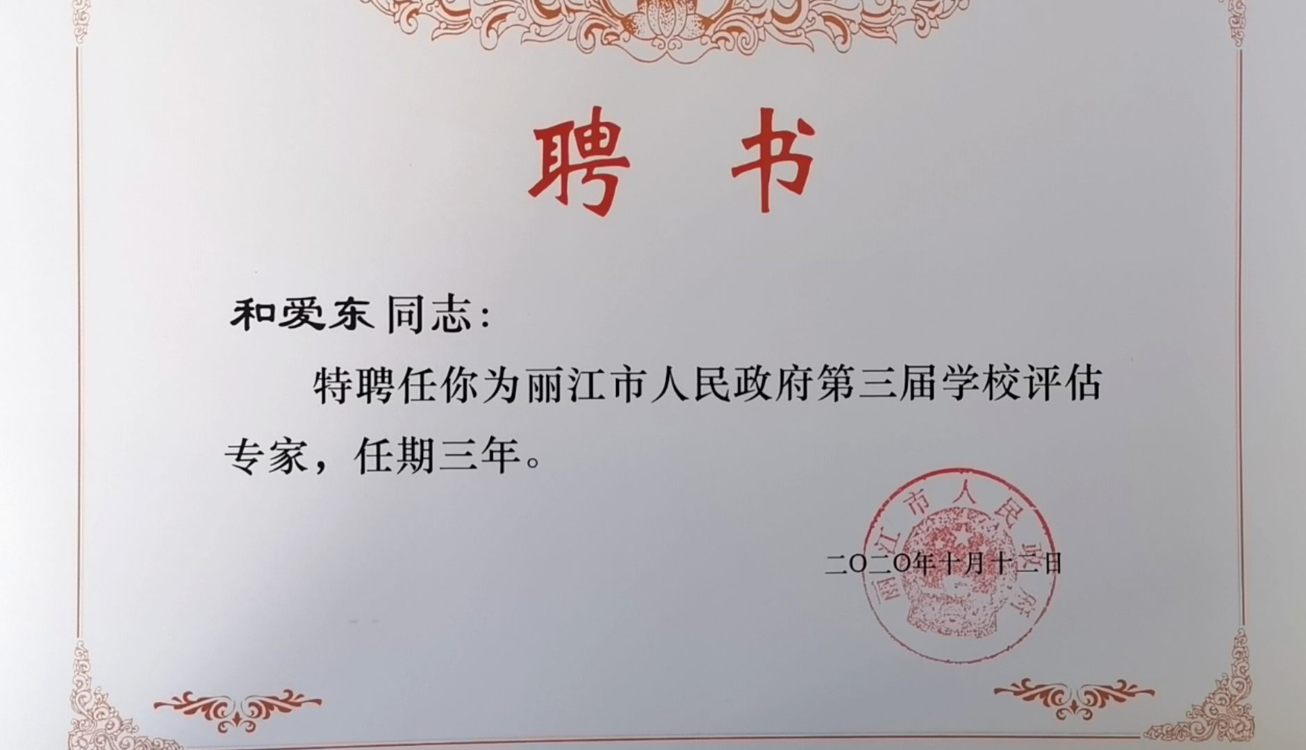 丽江市人民政府第四届督学和第三届各级各类学校评估专家名单公布,bat365官网朱桂香教授被聘任为“丽江市人民政府第四届督学”,职业教育类杨丽萍教授、学前教育类陈惠菊教授、基础教育类和爱东教授被聘任为“丽江市人民政府第三届学校评估专家”。
