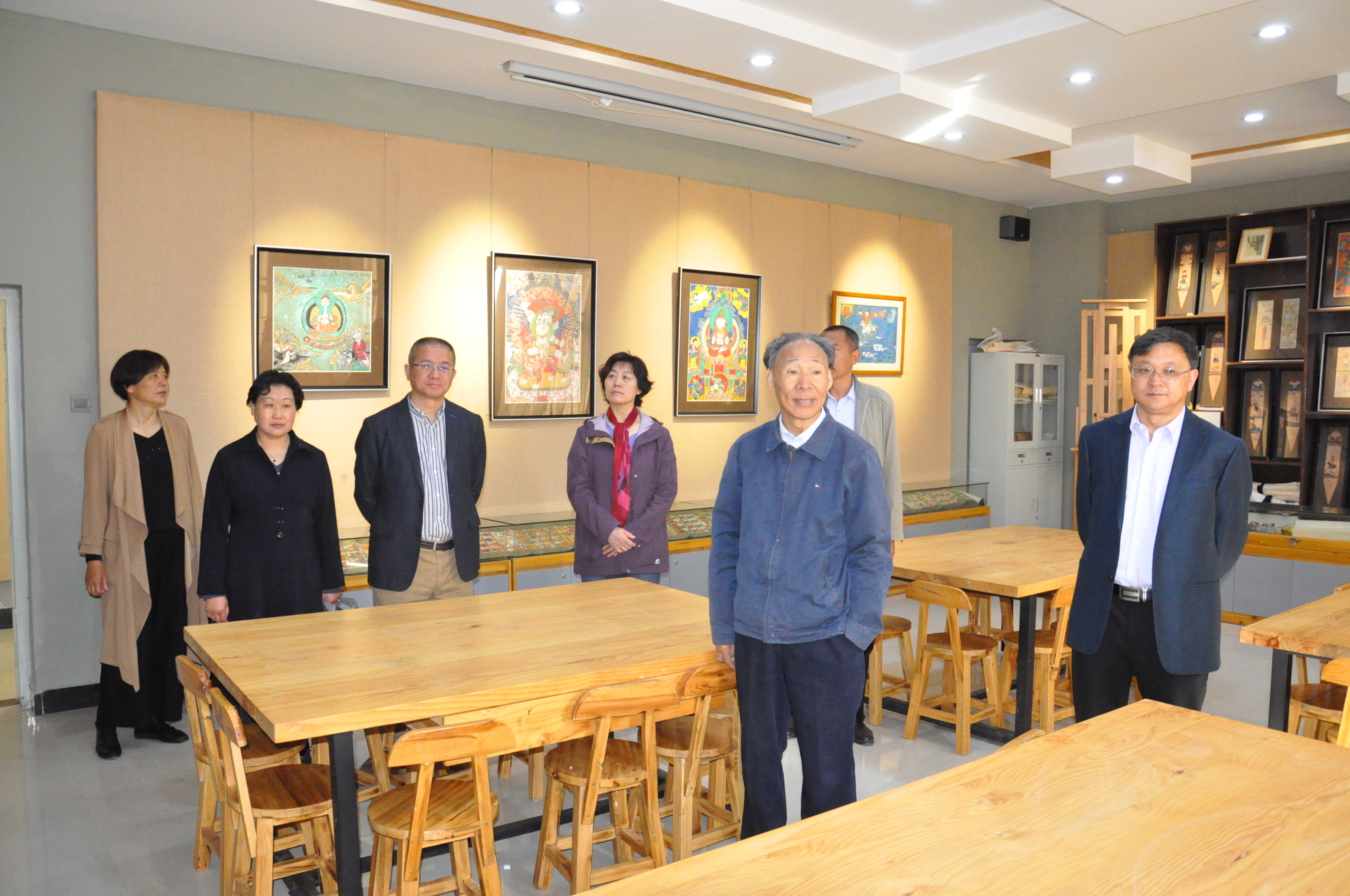 在滇西北民族艺术传承基地,艺术学院院长和爱东向白庚胜汇报了滇西北民族艺术传承基地建设情况,并逐一介绍张春和艺术工作室、丽江民族民间雕塑工作室、东巴画工作室和泸沽湖旅游工艺品研发校企合作工作室。白庚胜高度赞扬bat365官网实验实训中心建设力度和管理运行体制,对现有的实验实训室建设情况给予高度认可。