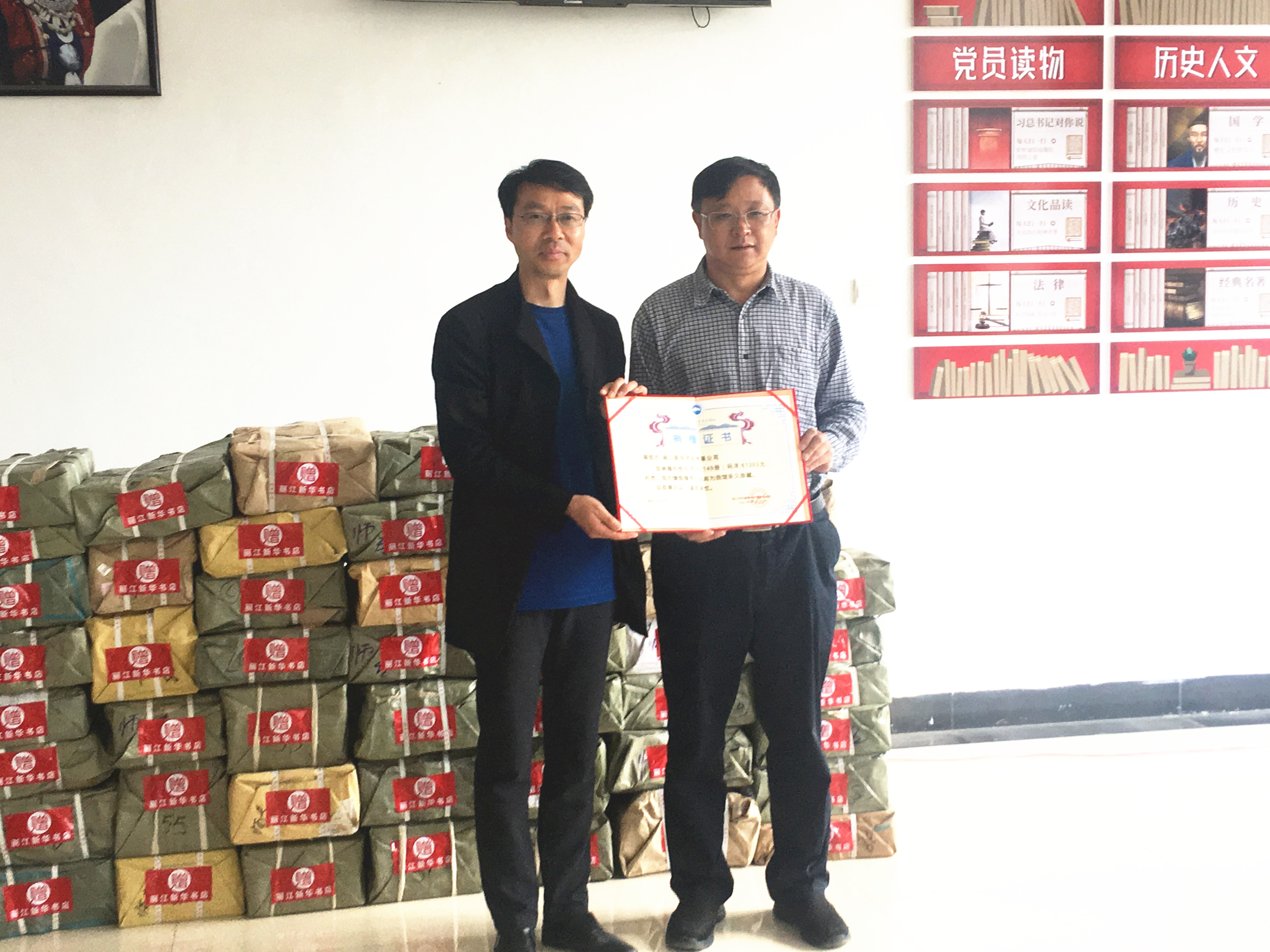 4月29日17时,捐赠图书仪式在图书馆大厅举行。丽江新华书店有限公司总经理牛丽泉、副总经理孔胜明、新华书店古城分公司负责人,学校校长毕天云、副校长朱桂香及图书馆部分职工参加捐赠仪式。此次捐赠图书共计2149册,价值6万余元。捐赠仪式上,毕天云校长代表学校接受捐赠并向牛丽泉总经理颁发捐赠证书。