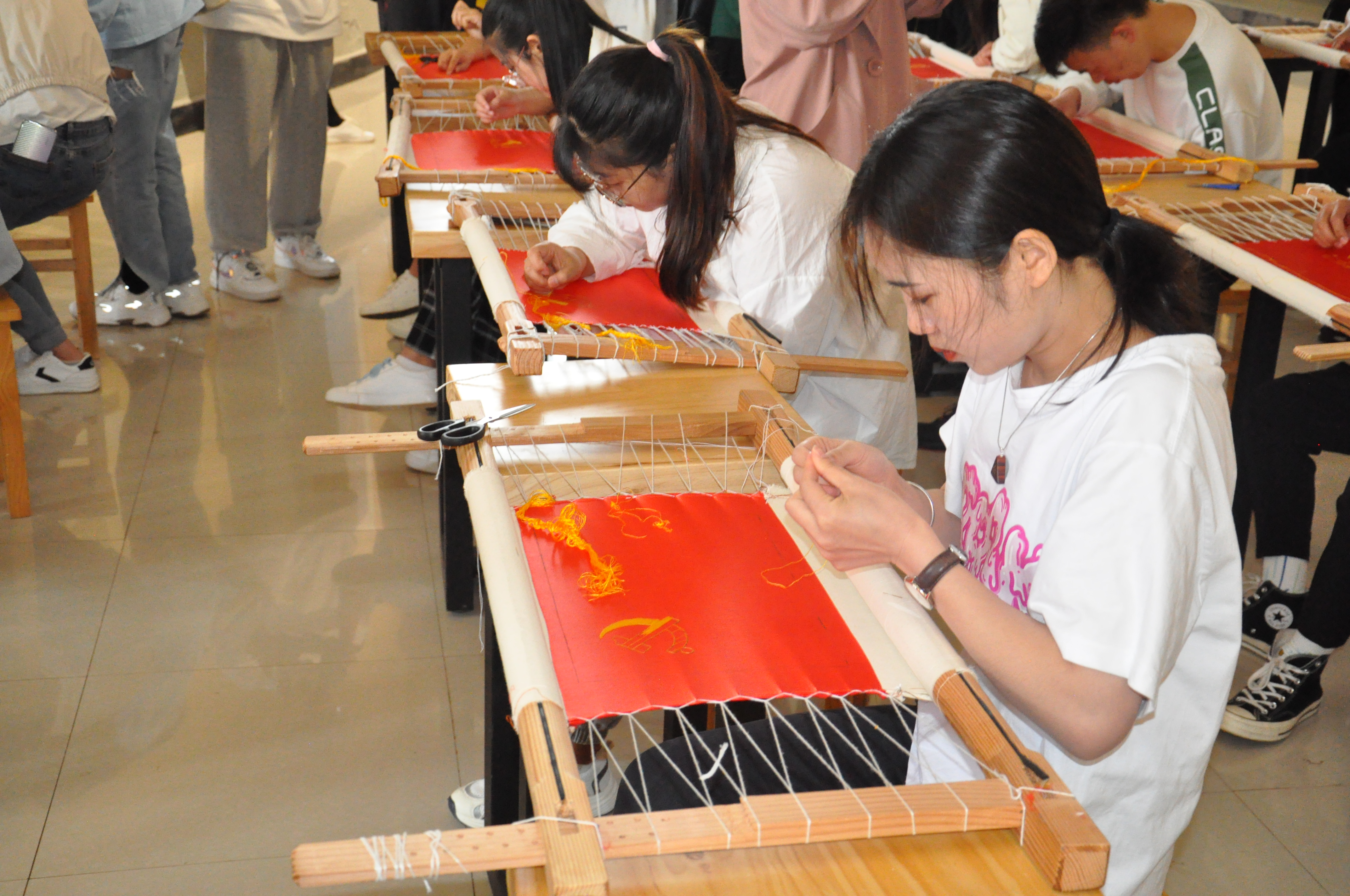 活动的现场还有党旗绣制活动,广泛同学参与党旗绣制活动,共同学习中国共产党的历史变迁,回顾峥嵘岁月。