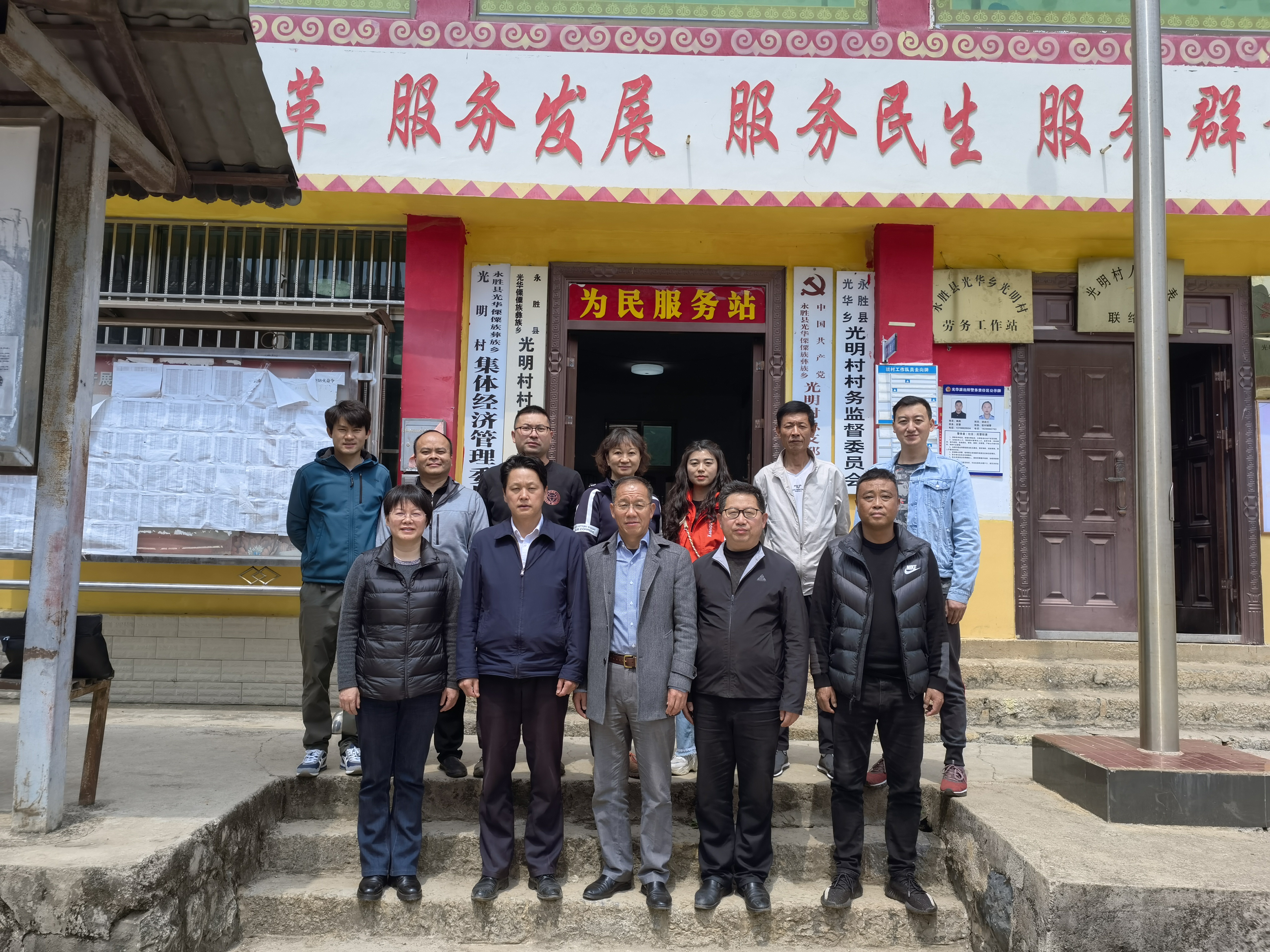 为切实履行定点挂联包村帮扶责任,积极落实“2021年省级单位挂联永胜县定点帮扶工作联席会议”要求,各单位共建沟通联络机制,充分发挥各自资源优势、特长,进一步帮助支持永胜县巩固脱贫攻坚成果有效衔接乡村振兴战略,2022年4月8日,应学校邀请,国家林业和草原局西南调查规划院党委书记、院长周红斌带队,副院长杨菁、党办主任赵颖、空间规划处处长罗晓琴等一行5人,就创建美丽乡村到bat365官网定点帮扶的永胜县光华乡光明村委会小村组开展实地调研、驻村交流等工作。除国家林业和草原局西南调查规划院的各位领导和专家外,参加此次调研活动和座谈会的还有学校党委副书记彭鸿昌,永胜县委常委、宣传部长李宝银,光华乡党委书记毛伟明、光华乡党委副书记、乡长杨学清、光华乡党委委员、人大主席白龙剑,以及光明村驻村工作队、村“三委”班子成员等。