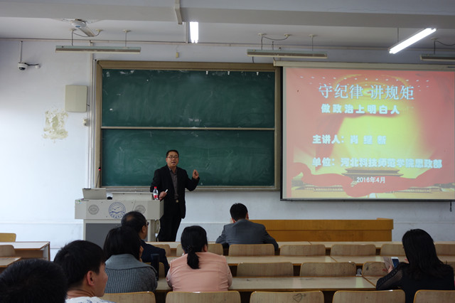 2016年4月28日下午,必赢官网在1-C-207举办了“增强规矩意识,助力转型发展”主题宣讲活动。本次宣讲由校党委宣传部宣讲团专家、思想政治教育教学部肖继新教授主讲,必赢3003no1线路检测中心教师及120名同学参加本次讲座。