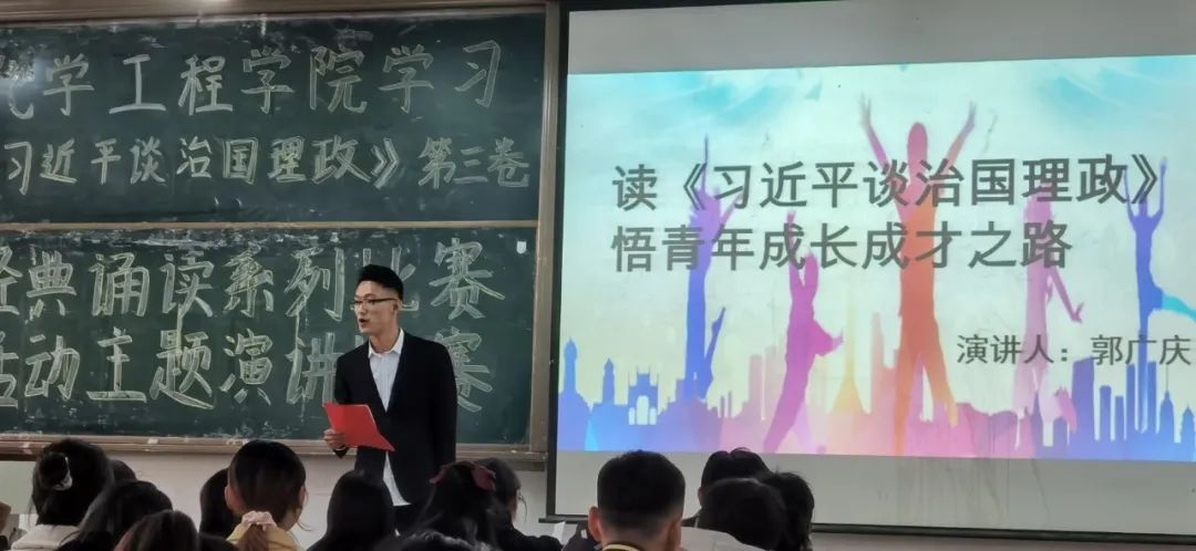 演讲之外,同学们更是通过书法、征文、朗诵等形式来表达对“治国理政”自己独特的见解和认识。新一代中国青年肩负使命,同筑梦。同我国努力实现伟大复兴梦而采取的多种方式一样,践行初心和使命。只有中国青年都活成一束光,中国便是那闪耀在云顶之上的太阳。