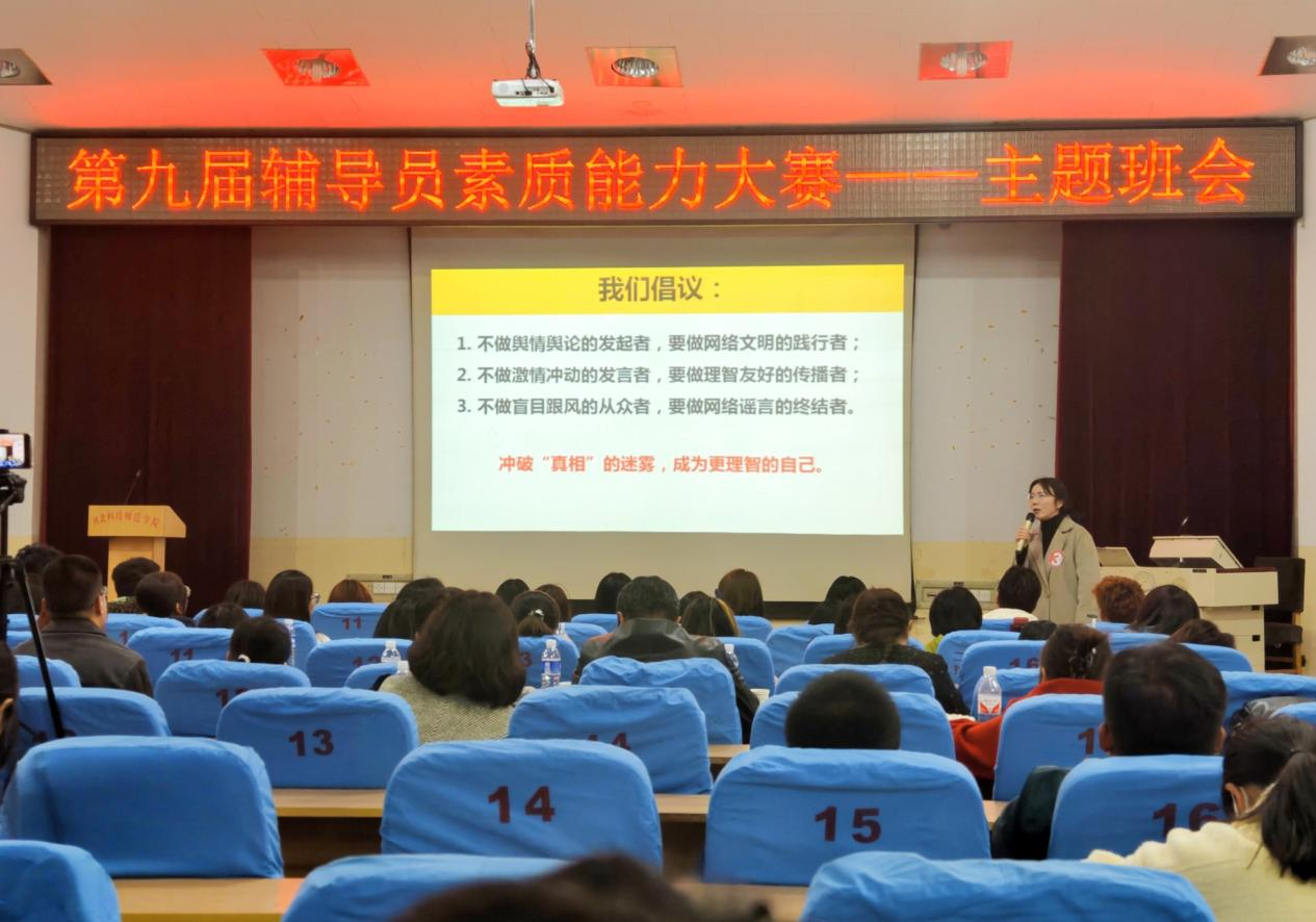 10月31日下午,必赢官网第九届辅导员素质能力大赛主题班会项目在昌黎校区学术报告厅成功举办。必赢官网王仕琪老师以《让子弹飞一会——冲破“真相”的迷雾,树立正确价值观》取得优异成绩。