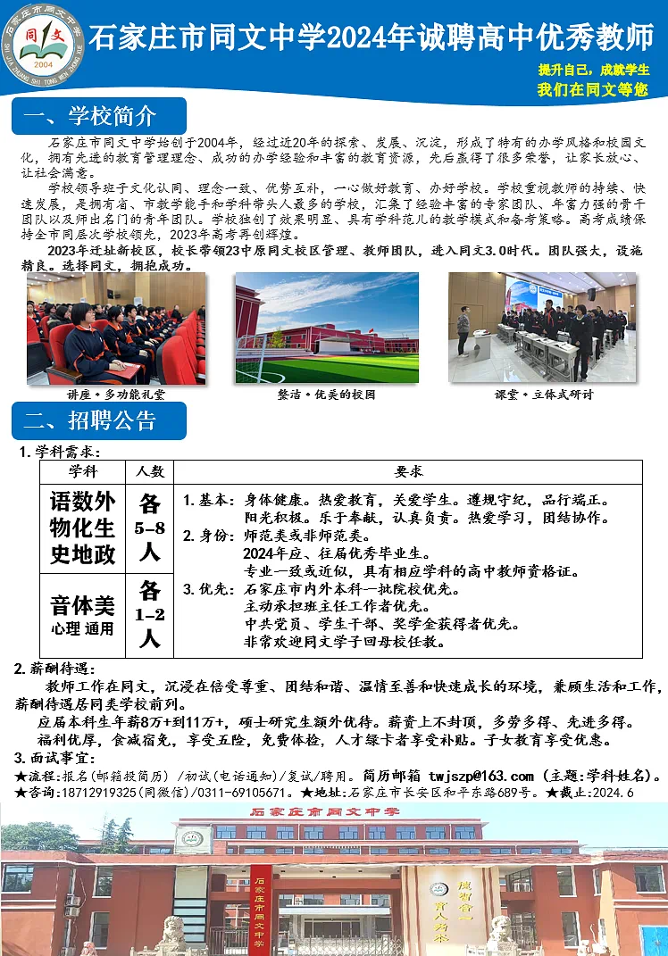 廊坊联衡高级中学诚聘初高中各科优秀教师